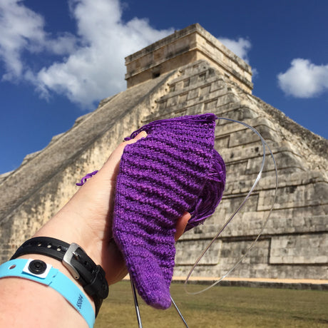 These socks were a travel project on Heather's recent trip to Mexico and reminded me of the steps leading up to the top of the pyramid at Chichen Itzà. These are worked...