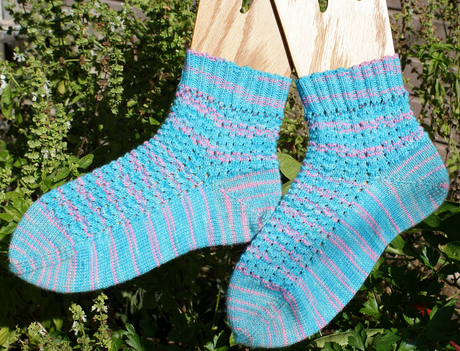 This pattern is available for $4.00 USD buy it now This is a toe-up, magic loop, charted lace sock pattern.