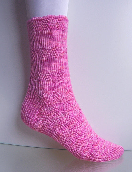 This pattern is available for $4.50. The almond shaped rib pattern of these socks shows up nice and clearly due to the enhanced stitch definition of the twisted stitches. With...